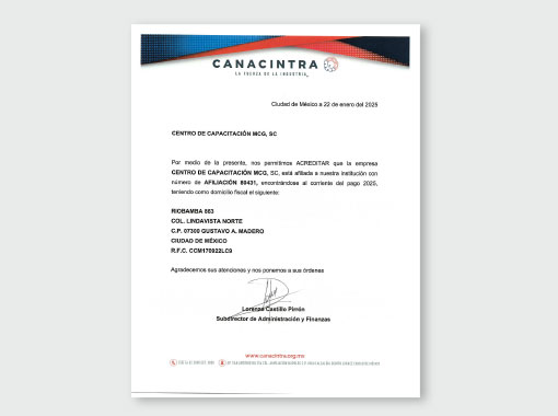 Los servicios de capacitación y consultoría que ofrece MCG de México están certificados bajo la norma ISO 9001:2015. Esta certificación avala la calidad de nuestros servicios y proporciona confianza a todos los clientes.