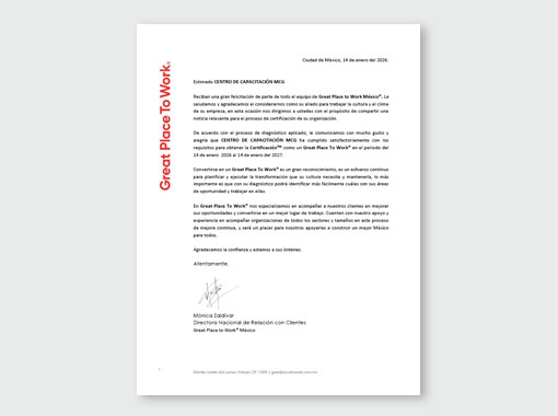 MCG es una organización orgullosamente mexicana, dedicada a brindar soluciones de capacitación, consultoría y auditoría, en diversas ramas de especialidad para las empresas que desean mejorar su competitividad.